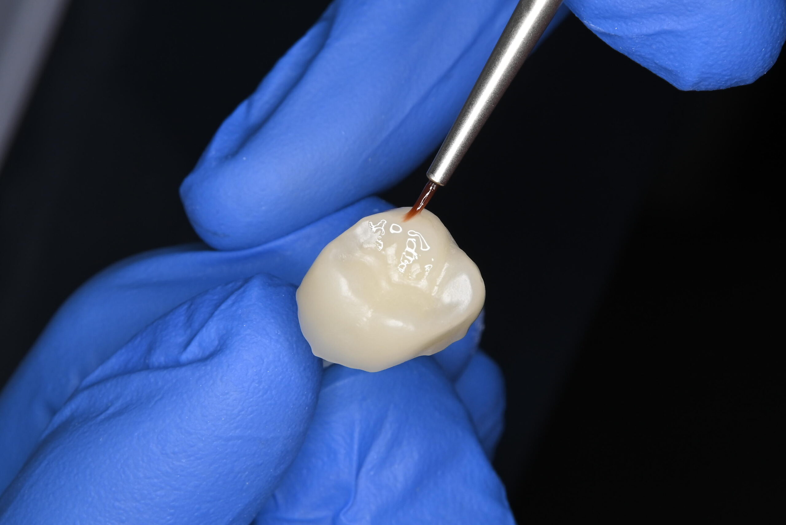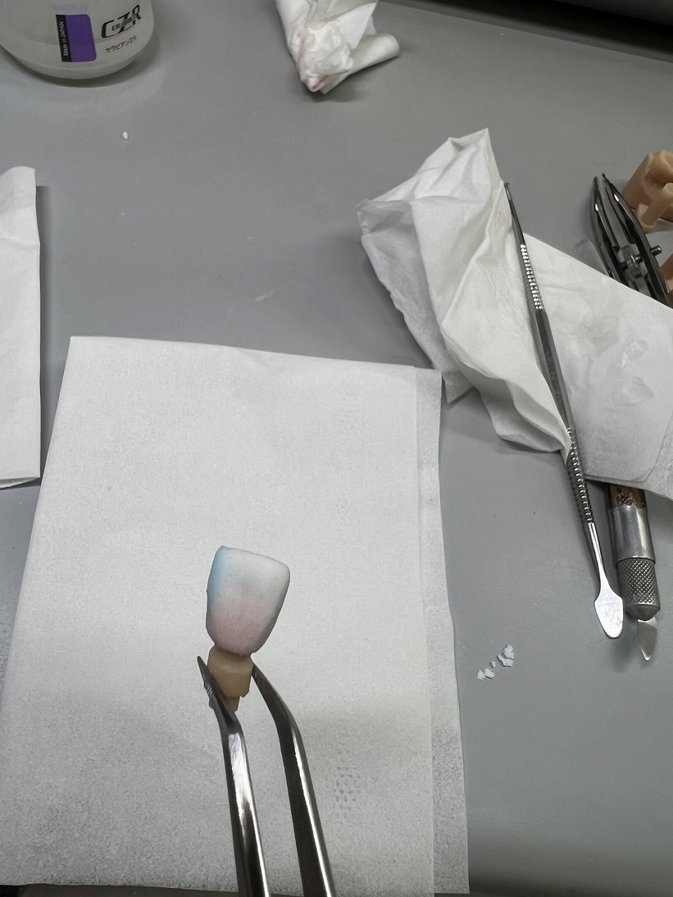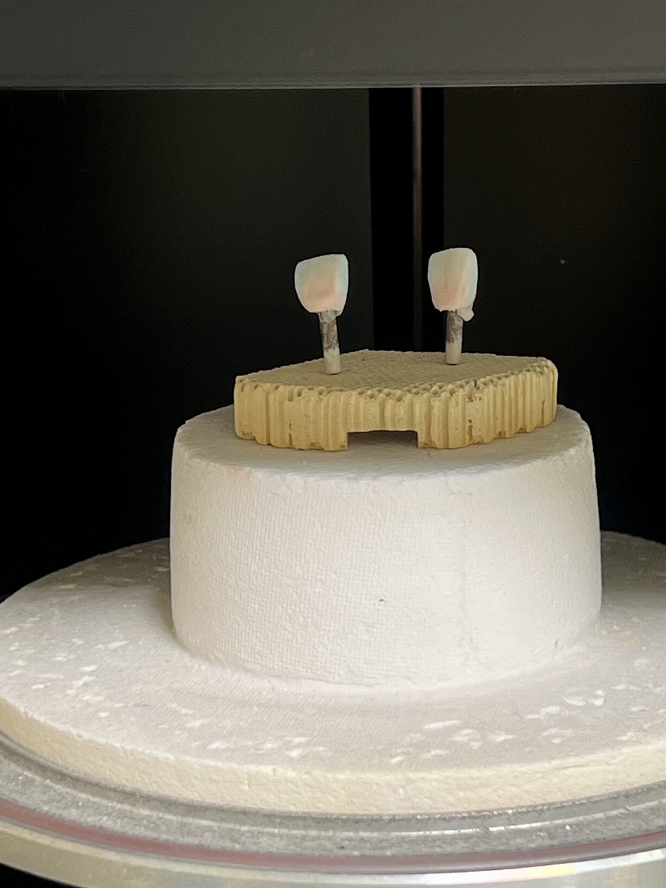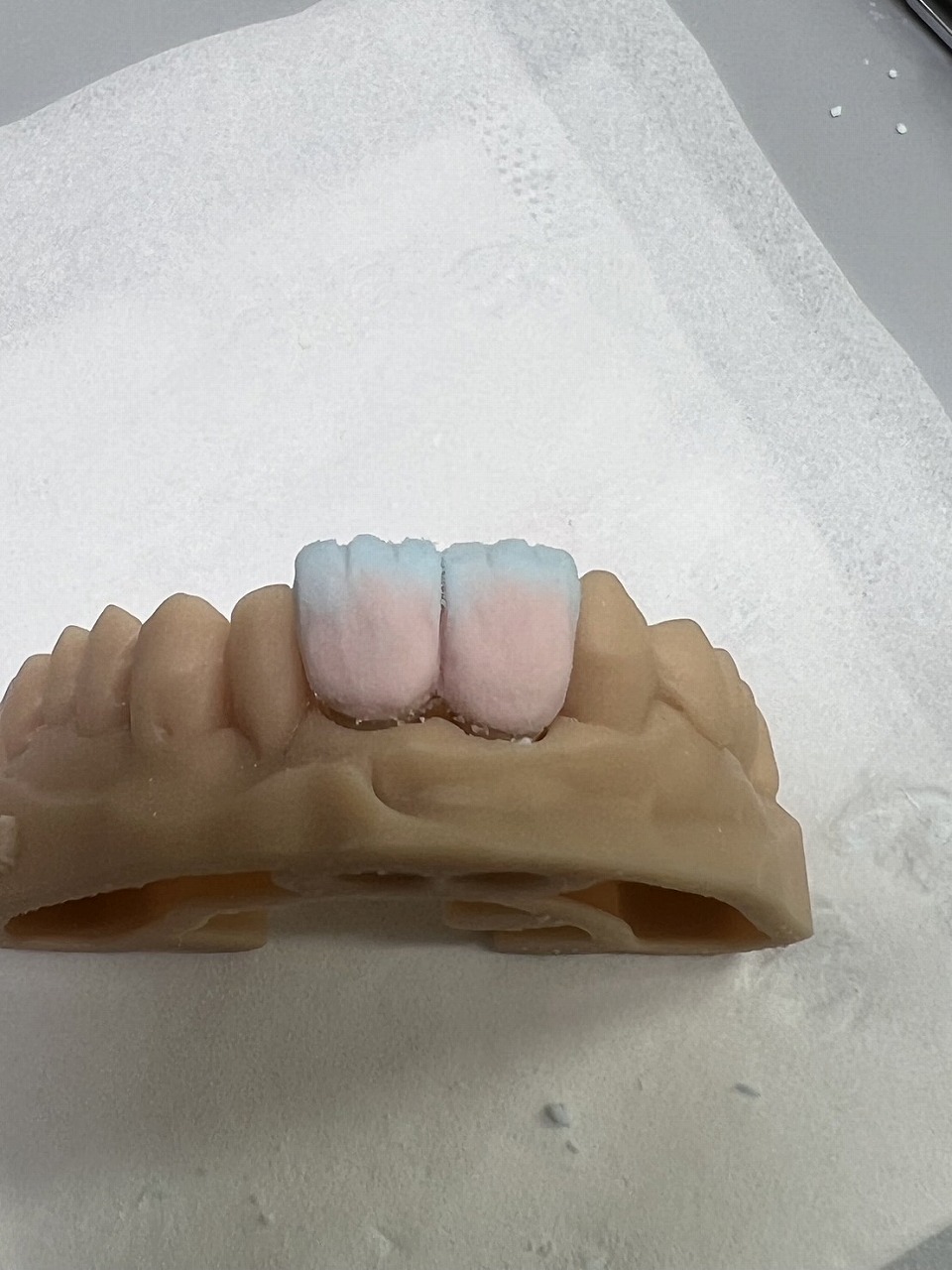 このようにジルコニアフレームの上に陶材を盛り上げます。