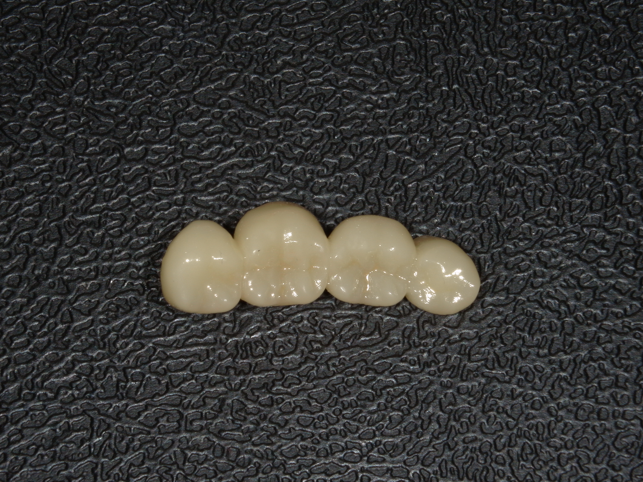 これは、ジルコニア単体で作られています。セラミックで最も曲げ強さと破砕抵抗性があり、耐久性に優れています。なので、強度が必要な奥歯のブリッジにも使用することができます。ジルコニアはつるつる💎なので、奥歯に使用しても噛み合う天然歯を摩耗させにくく、ジルコニア自体も傷みにくいです。ただし、前歯部に使用する場合は、透明感と色に多少制限があるため高い審美性を必要とする場合は、隣の歯の色調によっては若干違いが出ることもあります。