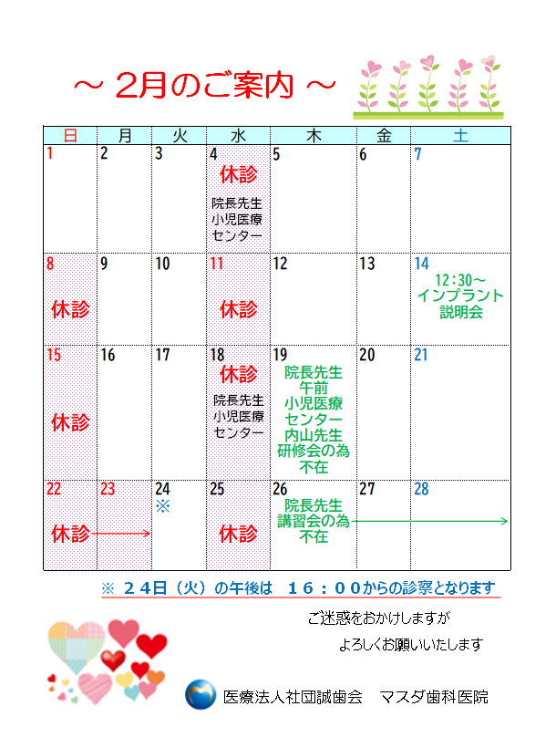 また第102回インプラント説明会を2/14(土)12:30~開催いたします。